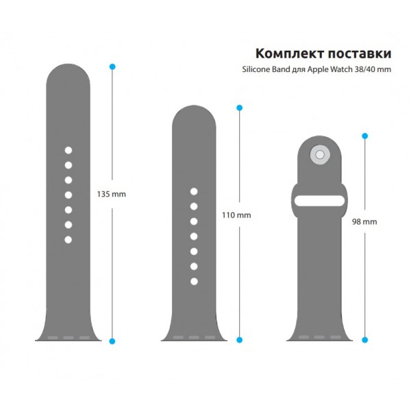 В комплект входит три детали (стандартного размера и укороченного), благодаря чему ремешок подойдет на разные обхваты запястья.