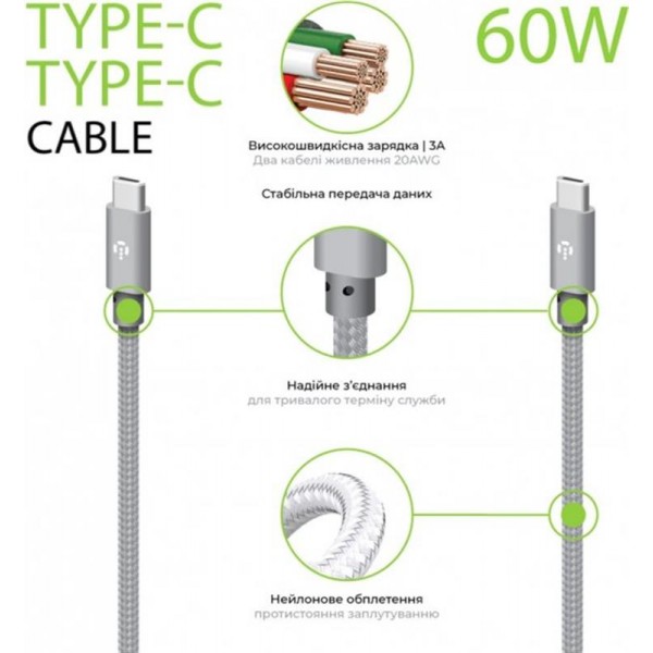 Універсальний кабель, який додасть максимальну швидкість передачі, а завдяки плетеному нейлоновому покриттю, кабель довго зберігатиме свою якість у місцях схильних до заломів..