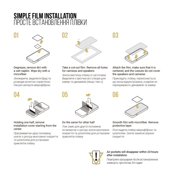 - Разгладить пленку микрофиброй и картой. Снять защитное верхнее покрытие